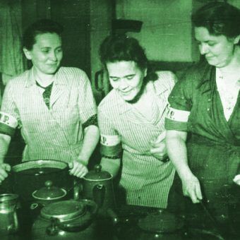 Krakowianki pracujące przy budowie niemieckich umocnień. Zdjęcie opublikowane w „Gońcu Krakowskim” z 15 sierpnia 1944 r.