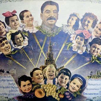 fot.domena publiczna…a tak na propagandowych obrazkach. (Maksym Gorki na żniwach w kolonii dziecięcej).