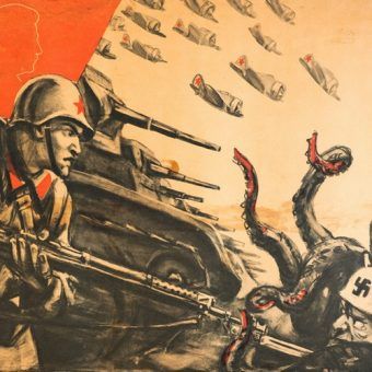 W sierpniu 1941 roku w Warszawie umieszczono olbrzymie płachty, przedstawiające żołnierzy Wehrmachtu, zmierzających walczyć z Sowietami. – Na froncie wschodnim, u boku żołnierza niemieckiego są...