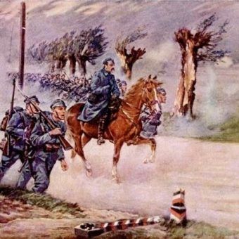fot.domena publicznaPiłsudski planował, że na czele strzelców będzie się ścigać z Prusakami o to kto pierwszy wkroczy do Warszawy. Na zdjęciu Józef Piłsudski i Kazimierz Sosnkowski na czele kolumny członków Związku Strzeleckiego podczas ćwiczeń (1913).