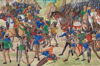 Również wspomniana wcześniej wojna stuletnia nie była pozbawiona krwawych starć, żeby wymienić jedno z nich stoczone pod Crécy 26 sierpnia 1346 roku. Już na wstępie doszło tam do swoistego pojedynku między angielskimi łucznikami, a genueńskimi kusznikami na służbie francuskiej. Niestety dla francuskich najemników pojedynek zakończył się tragicznie. Jak podaje kronikarz: