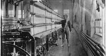 Najmłodsze dzieci często zatrudniano do czyszczenia urządzeń, których w czasie ich pracy nawet nie wyłączano. Prowadziło to do niezliczonych wypadków. Zdjęcie poglądowe.
