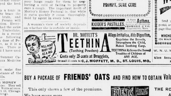 Kalomel był bardzo popularnym środkiem, używanym jako lekarstwo już od XVI wieku. Benjamin Rush leczył za jego pomocą pacjentów szpitali psychiatrycznych i zarażonych żółtą febrą. Ale środek ten stanowił również główny składnik proszku dla ząbkujących niemowląt. Zatroskani rodzice wcierali go w dziąsła swoich pociech wierząc, że przyniesie ona ulgę cierpiącym maleństwom. Na reklamie proszku Teethina dr. Moffeta przekonywano, iż nie tylko uśmierzy on ból, ale również wzmocni dziecko, zlikwiduje problemy z wypróżnianiem się oraz „uczyni maluszka tłuściutkim jak prosiaczek!” Nie przejmowano się specjalnie faktem, iż składnikiem kalomelu jest rtęć.