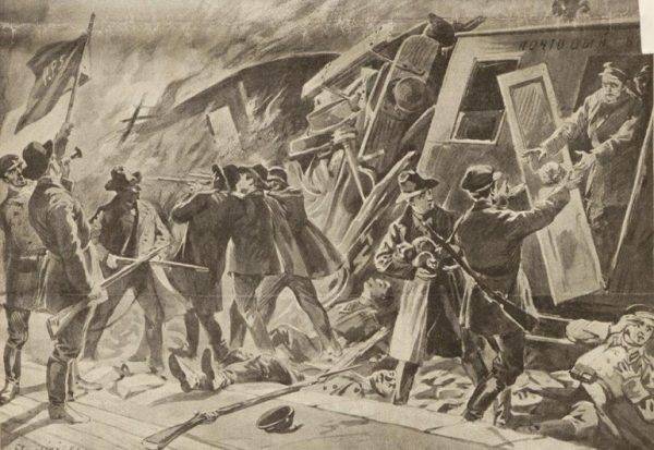 Na ten sygnał grupa bojowców Polskiej Partii Socjalistycznej pod dowództwem Walerego Sławka, która jechała składem, rozbroiła żandarmów pilnujących wagonu pocztowego. Pozostali pasażerowie wpadli w popłoch, przerażeni o swoje życie i zdrowie To napad! Ryzykowna gra, za którą groziła co najmniej katorga a najpewniej śmierć, była warta świeczki. Pociąg przewoził ponad 200 tysięcy rubli! Takiej gotówki polscy bojówkarze spod znaku czerwonego sztandaru jeszcze nie widzieli.