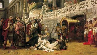 fot.domena publicznaFulwia kazała przynieść sobie głowę Cycerona, a następnie przebiła jego język złotą szpilką do włosów