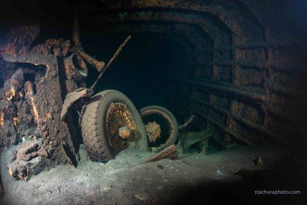 We wnętrzach parowca odkrywcy znaleźli m.in. pozostałości ekwipunku wojskowego ofiar, buty, hełmy, pasy, broń, porcelanę oraz wiele zamkniętych skrzyń i wojskowe samochody. Jak podkreśla Stachura: