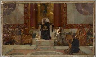 Bitwa przy moście Mulwijskim, w której Konstantyn I Wielki pokonał Maksencjusza.