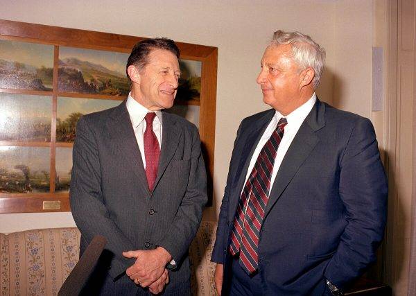 Minister obrony Sharon (po prawej) ze swoim amerykańskim odpowiednikiem Casparem Weinbergerem , 1982 r.