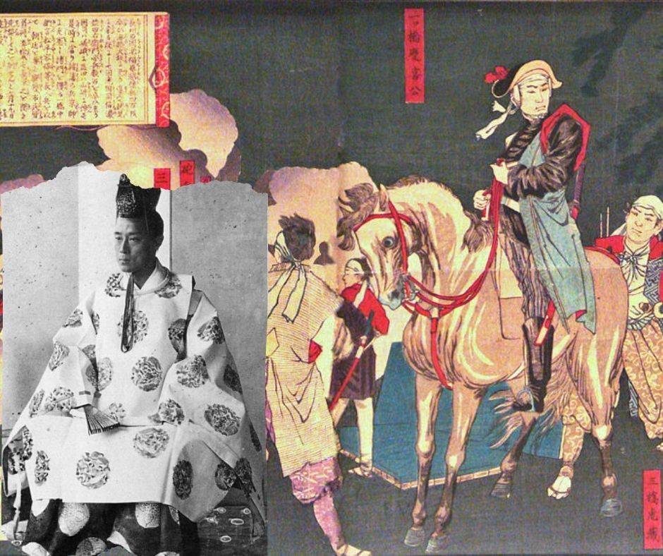 Dwór cesarski, który przez kilka stuleci pozostawał na uboczu, nagle ponownie pojawił się jako ośrodek polityczny. Przełom nastąpił dzięki sojuszowi politycznemu zawartemu między potężnymi domenami południowo-zachodnimi a najbardziej zdeterminowanymi arystokratami dworskimi. Radykalni samuraje z Satsumy i Chōshū porzucili swoją dotychczasową odruchową nieufność wobec cudzoziemców, przekonani, że modernizacja kraju wymaga powstania nowego systemu politycznego skoncentrowanego wokół cesarza i otwartego na Zachód ( Warto zaznaczyć, że wśród samurajów wcale nie było jednomyślności co do idei restauracji władzy cesarskiej, odrzucenia klasowych przywilejów ani kierunku polityki zagranicznej wobec krajów Zachodu (przyp. red.).