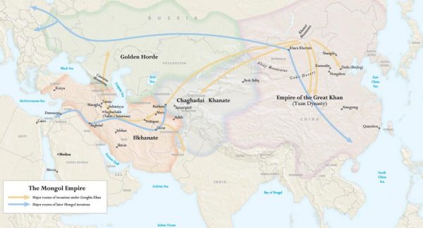Od połowy XIII do połowy XIV wieku Mongołowie sprawowali wyraźną kontrolę nad wymianą towarową w całej Eurazji i chociaż w tym okresie doszło do załamania części mongolskich ułusów( plemion, przyp. red) Złota Orda nadal ułatwiała handel na duże odległości. Mongołowie stworzyli gęstą sieć powiązań gospodarczych, od Morza Śródziemnego przez Morze Kaspijskie po Chiny.