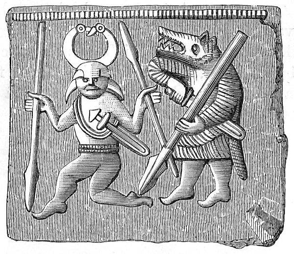 Płyta wykonana z brązu pochodząca z ery Vendela znaleziona w Olandii przedstawiająca berserka.