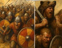 Wikingowie łączyli brutalność z dyscypliną. Od dziecka szkoleni w glimie — nordyckiej sztuce zapasów — stawali się mistrzami walki wręcz i z bronią. W bitwie tworzyli żywe mury z tarcz, stosowali podstępne manewry i formacje przypominające rzymskie szyki. Dzięki temu przez wieki siali postrach na lądzie i morzu.