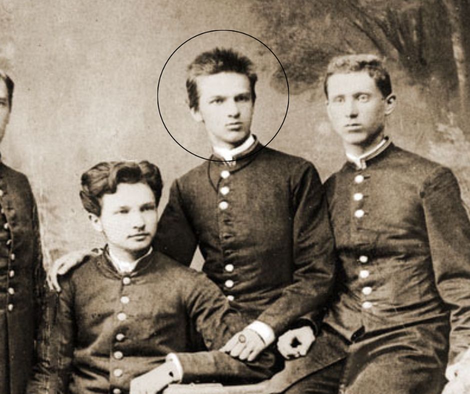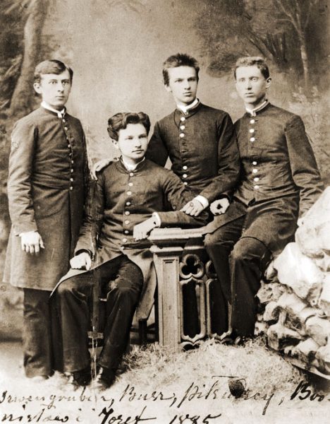 fot.Autor nieznany / domena publicznaBronisław Piłsudski (2. od lewej) i Józef Piłsudski (3.), 1885. Kółko samokształceniowe Spójnia w gimnazjum wileńskim