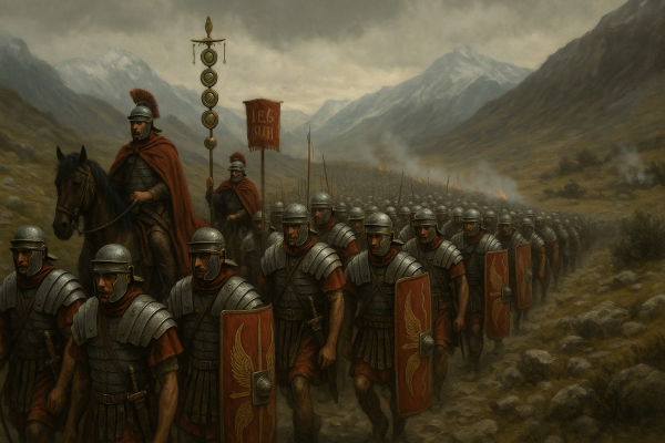 fot.Grafika wygenerowana przy użyciu AILegiony Trajana maszerują przez góry Armenii w drodze do Mezopotamii