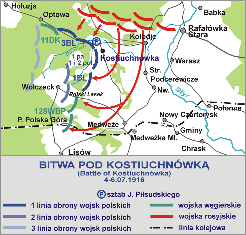 Boje pod Kostiuchnowką prowadzone w dniach 4–6 lipca 1916 roku zasadnie nazywane są największą polską bitwą pierwszej wojny światowej. Rzecz jasna, gdybyśmy skrupulatnie policzyli Polaków walczących na przykład w kilkumiesięcznej bitwie pod Verdun, to ich liczba byłaby większa niż rodaków uczestniczących w bojach pod Kostiuchnówką. Nie o to wszak chodzi. Istotne jest to, że na Wołyniu legioniści toczyli walki z Rosjanami odziani w polskie mundury, mając na czapkach orzełki. Bili się o Polskę. Tymczasem pod Verdun walczono za Francję i Niemcy.