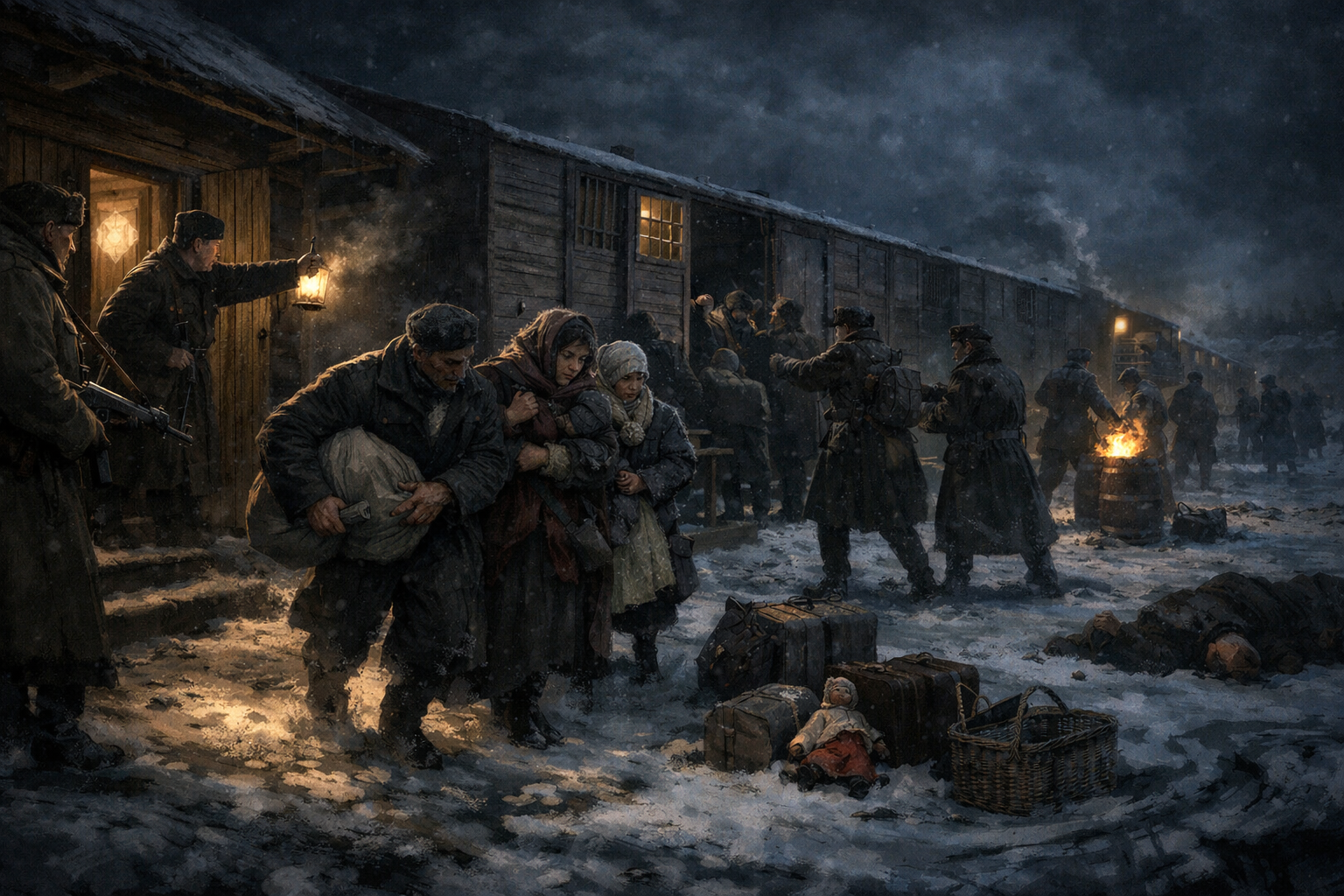 fot.Fotografia podglądowa / wygenerowana przez AISowieckie deportacje nie były chaotycznym odruchem okupanta ani doraźną zemstą. Były zaplanowanym mechanizmem przemocy, uruchomionym decyzją z Moskwy