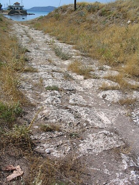 Wynika to z badań archeologicznych prowadzonych w latach 1956–1959 przez pracowników Greckiego Serwisu Archeologicznego. Nie wykazały one obecności śladów kopyt zwierząt na drodze, a co do ewentualnych maszyn – brak jest dowodów na ich istnienie.
