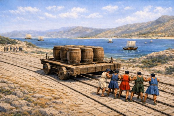 Wąski przesmyk koryncki od tysięcy lat stanowił wyzwanie dla żeglarzy. Dziś przecina go Kanał Koryncki, ale na długo przed jego budową starożytni Grecy znaleźli własny sposób na „przenoszenie morza przez ląd”. Tak powstał diolkos – niezwykła kamienna droga, po której statki przeciągano niczym po starożytnej autostradzie.