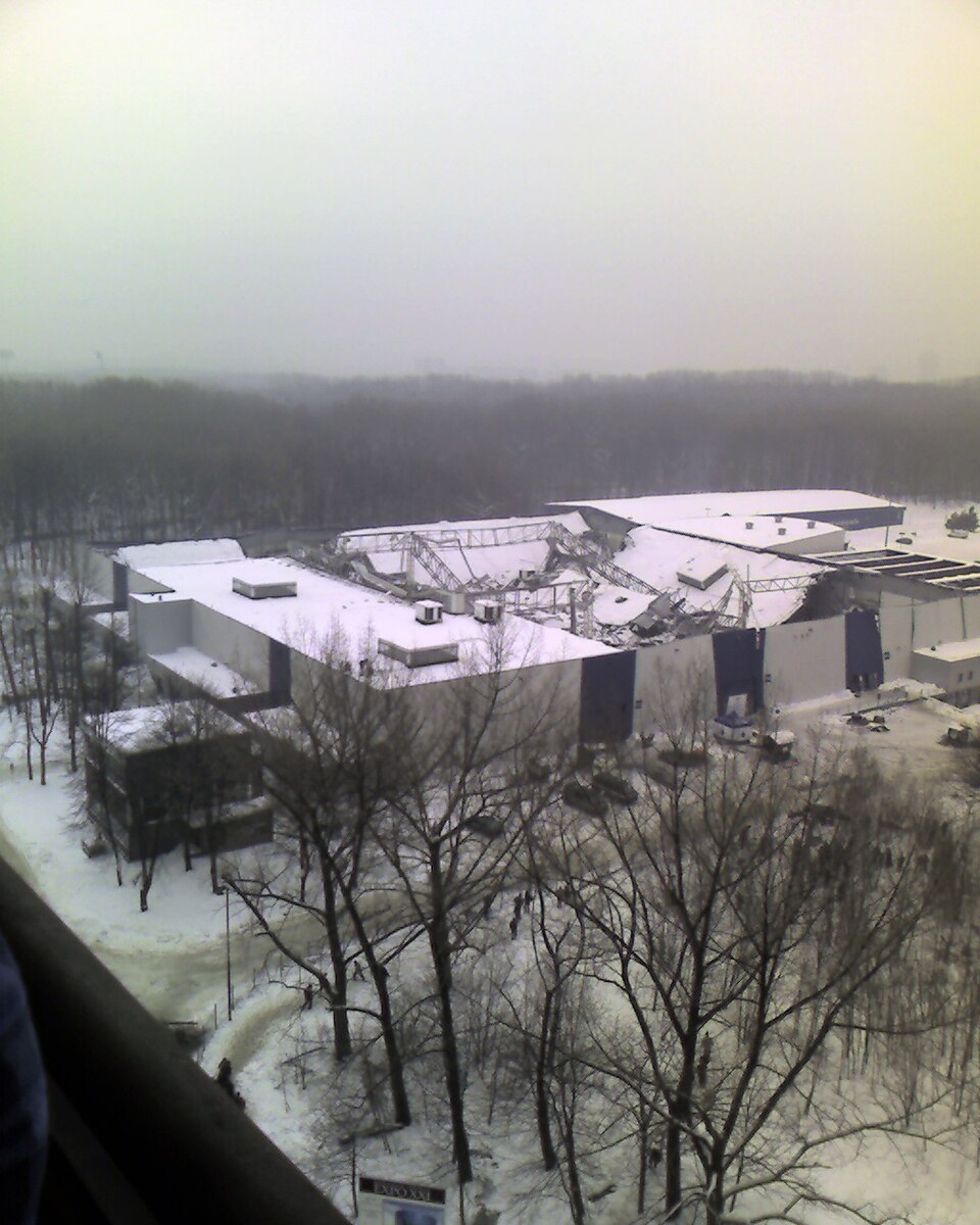 Po godzinie 17:00 część obecnych w budynku gości usłyszała trzask. Spojrzawszy w górę, zauważyli urywający się dach, który błyskawicznie spadł. Sama hala ma około 10 metrów wysokości, natomiast czas, w jakim doszło do tragedii, można było liczyć w sekundach. Zawaleniu uległa wyższa, środkowa część, która pociągnęła za sobą niższą. Stało się to o 17:15. Wcześniej nie było żadnych sygnałów, które mogłyby wskazywać na zawalenie się konstrukcji. Dach spadł bezpośrednio na uczestników wystawy, których liczbę szacuje się na od 700 do 1300 osób.