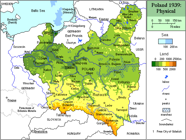 fot.Mariusz Paździora / CC BY 3.0Mapa fizyczna Polski 1939