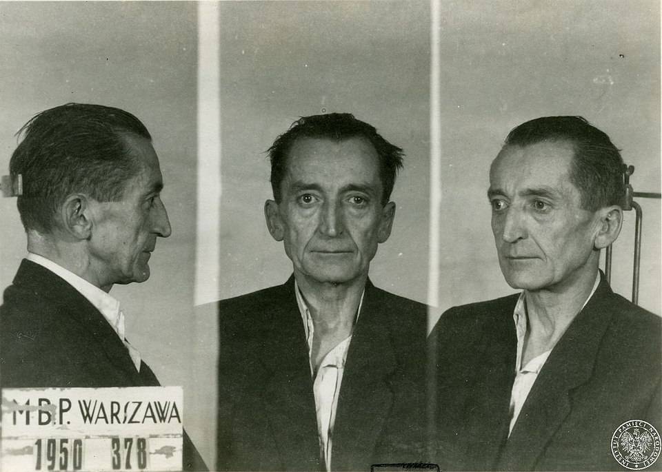 fot.Ministerstwo Bezpieczeństwa Publicznego , oficjalne zdjęcie policyjne po aresztowaniu / domena publicznaEmil Fieldorf po aresztowaniu (1950)